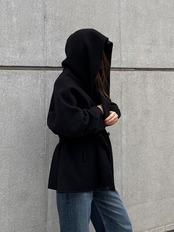 フードもやや大きめに設計しているので、フードを顔まわりにもってくるとボリュームがでて小顔効果もございます。