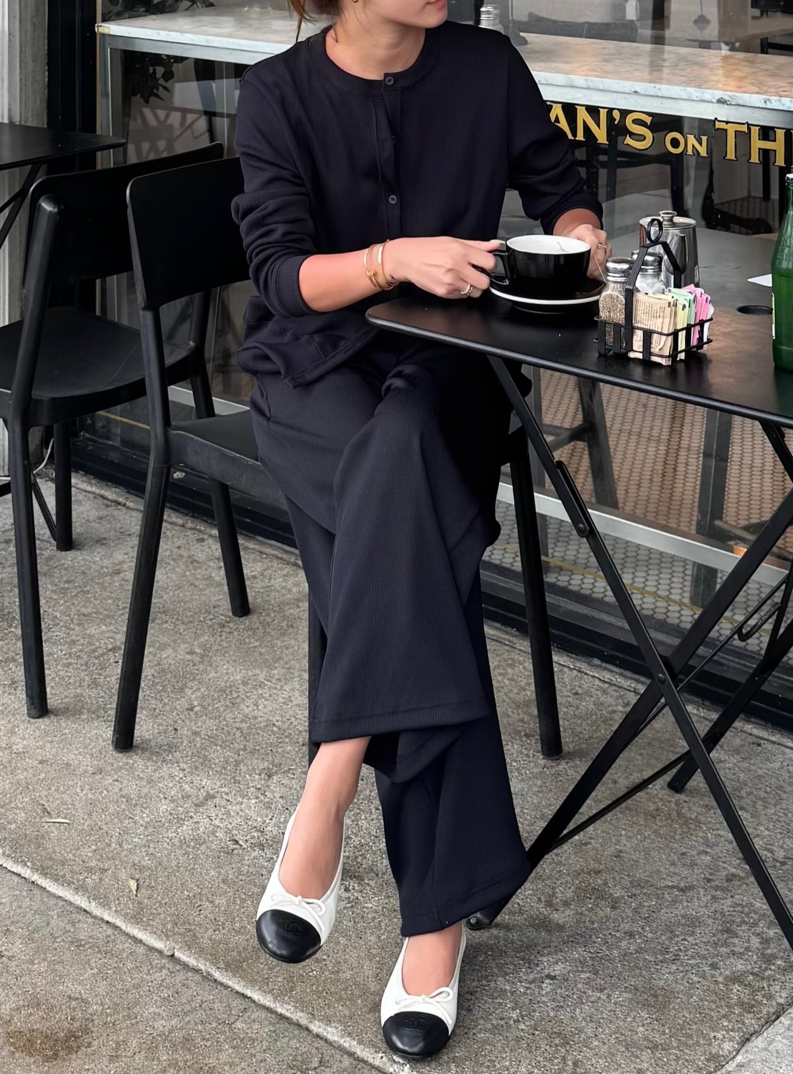 イージーな履き心地とリブの縦ラインがボディラインをスッキリとみせてくれます。