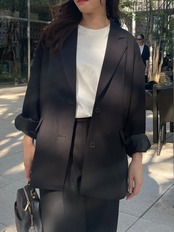 ドロップショルダーでオーバーサイズのテーラードジャケット。