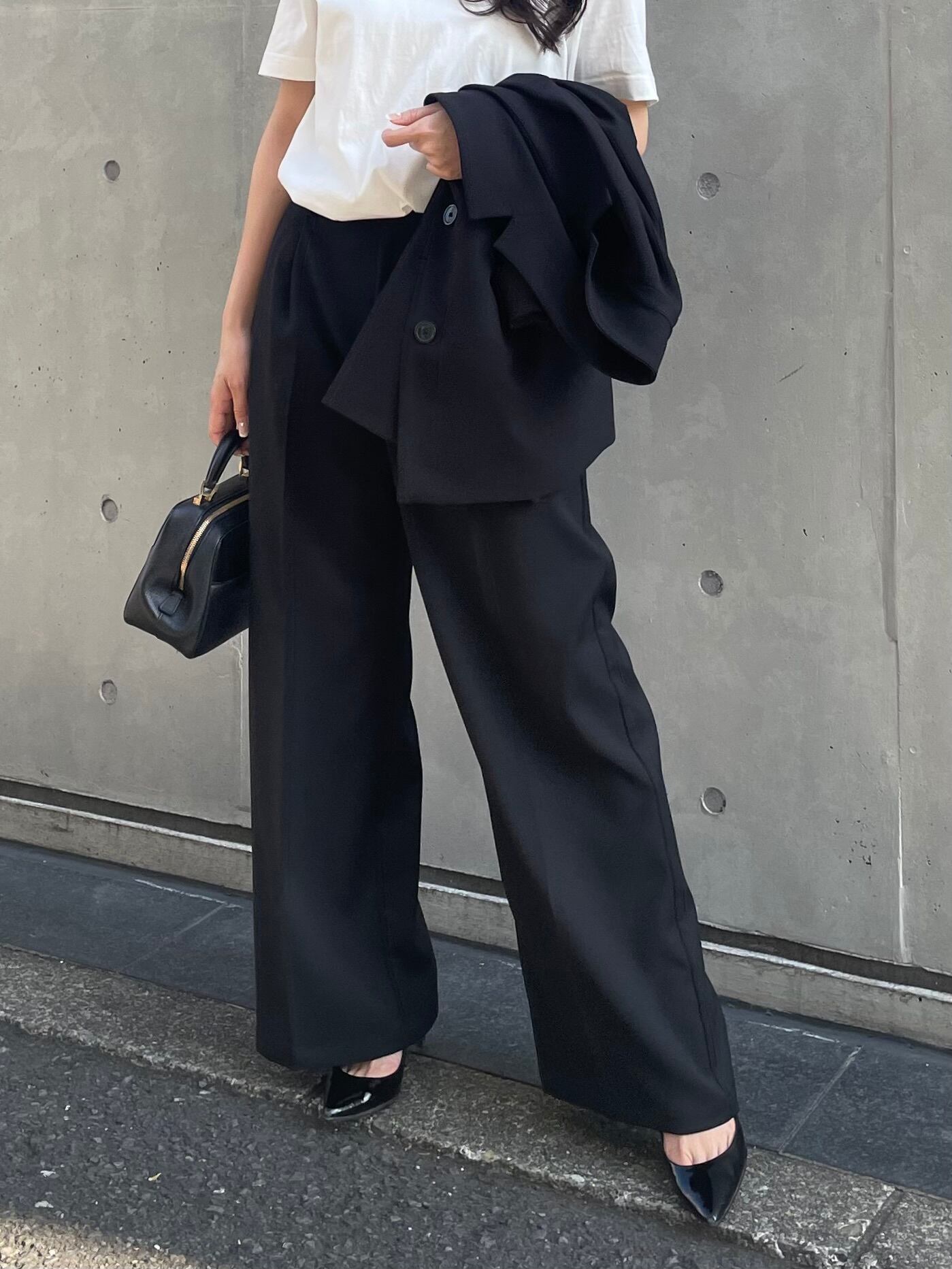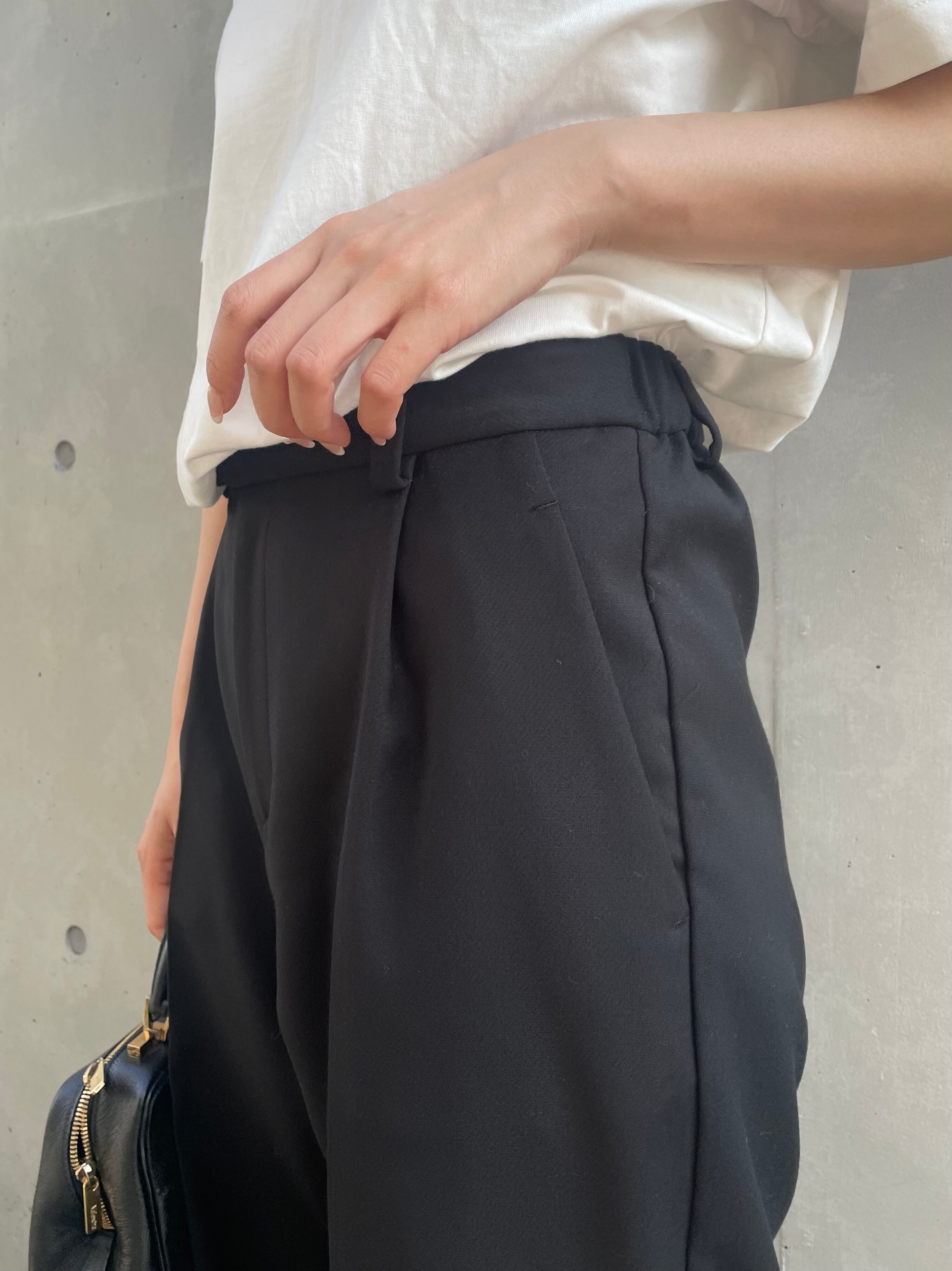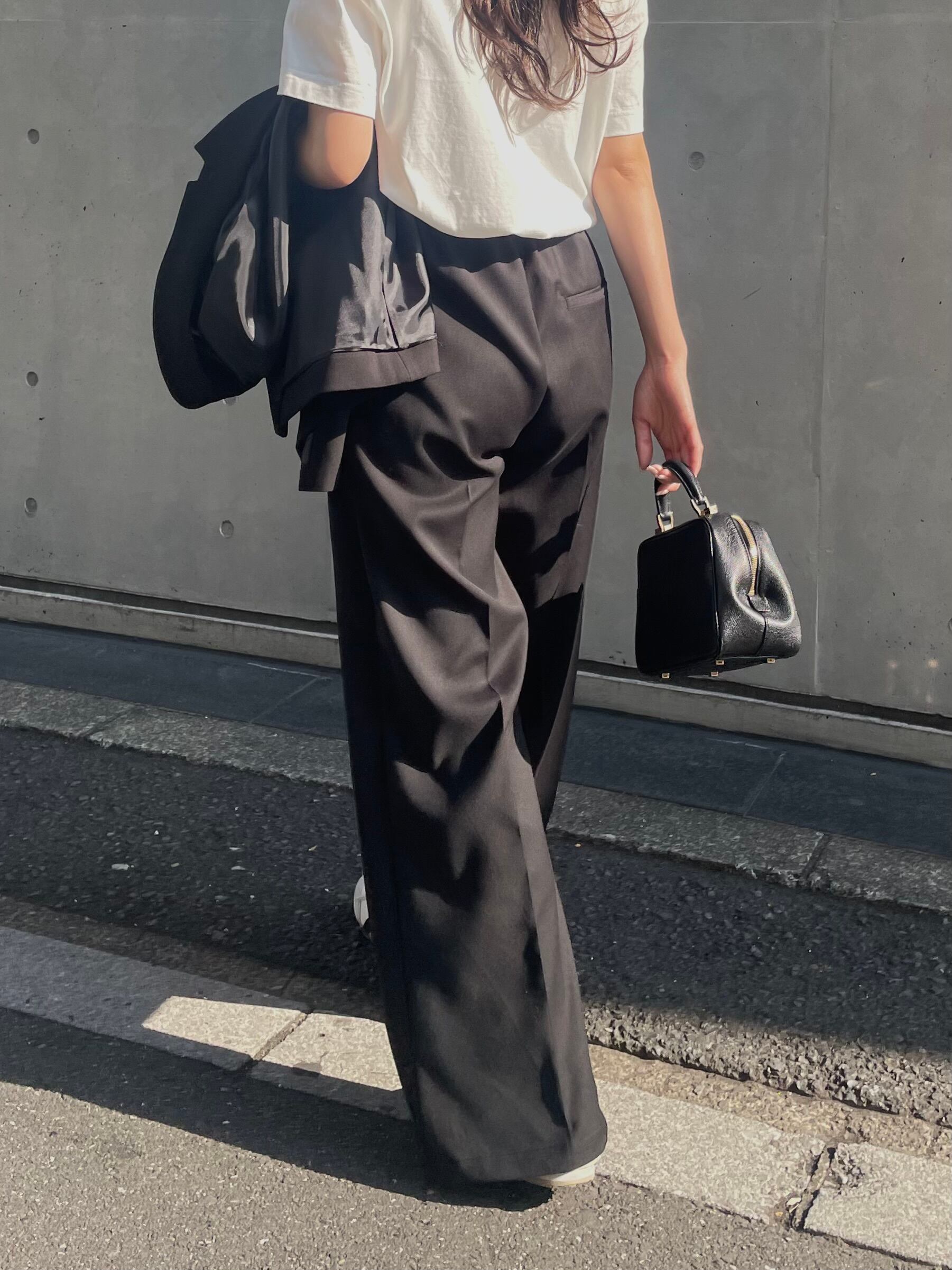 上質な素材だからこその程良い光沢感や質感、ウエストから裾まで綺麗に落ちたシルエットで、ワイドでありながらもバランスも取りやすい1本です。