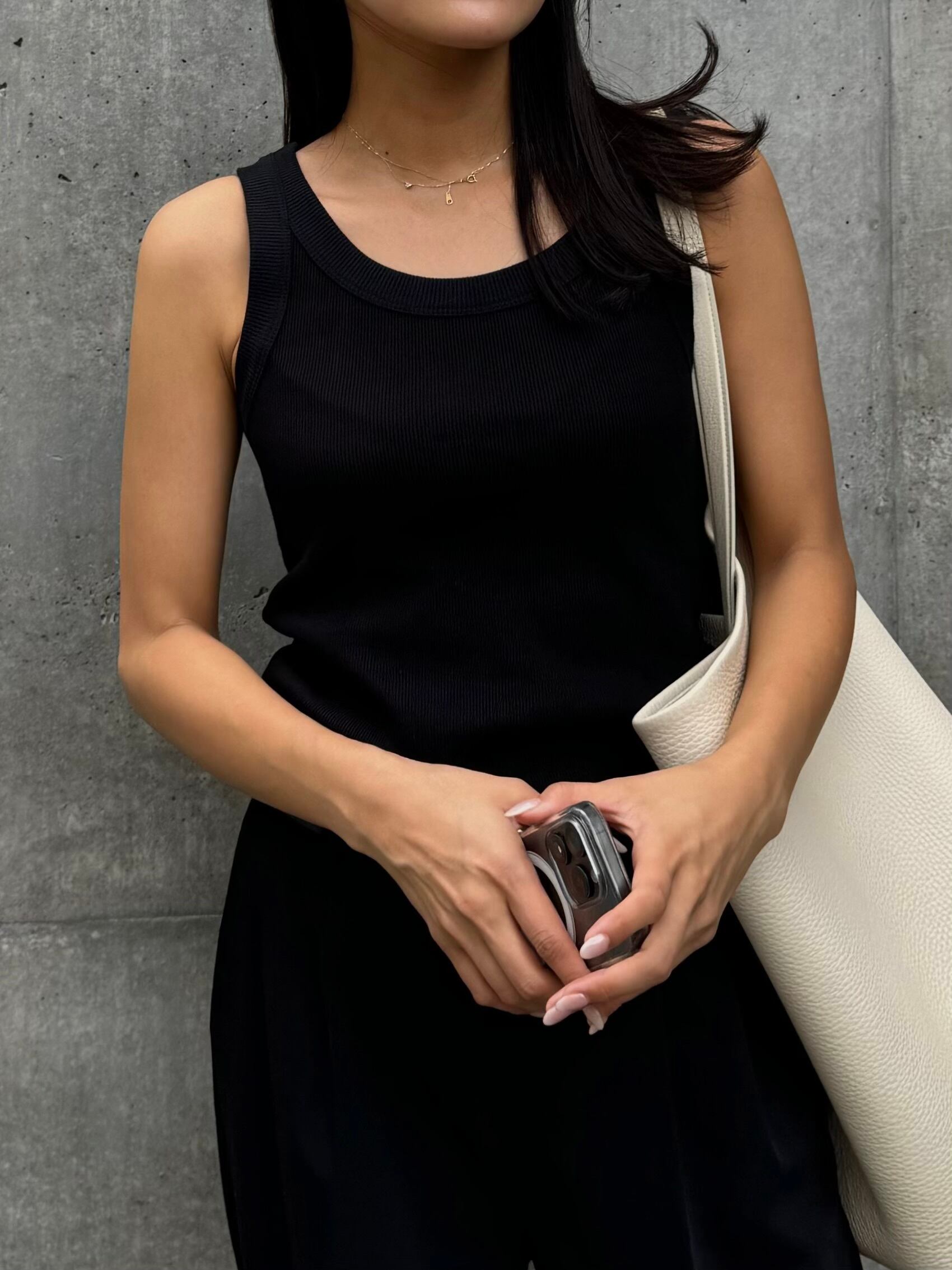 リブ素材なので伸縮性もありつつ、ヨレにくい厚手の生地を選び高級感のある1着です。